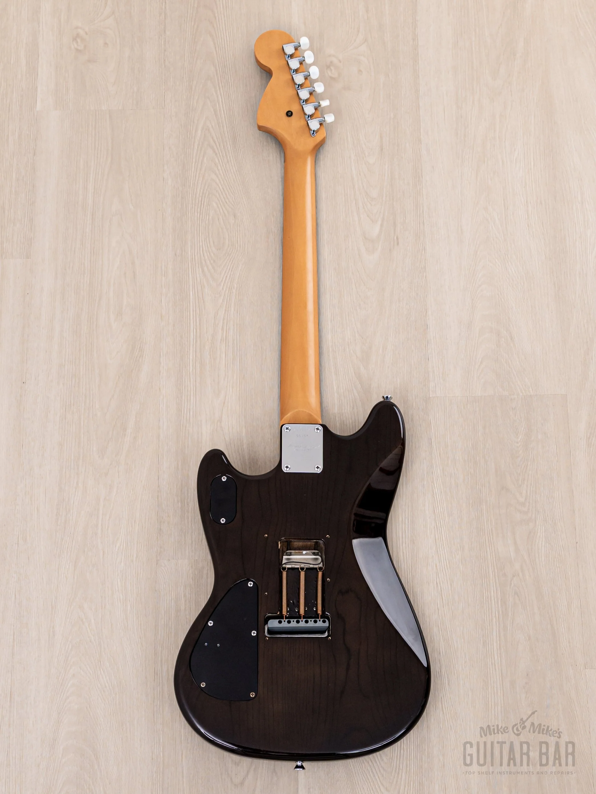Tonewoods include a white ash body, maple neck, and slab rosewood fretboard, and this MG-2 weighs 7lbs 9oz. There’s a wide array of tonalities via the trio of single coil pickups and Levinson’s proprietary switching: the pickups themselves are smooth and articulate, with a healthy dose of low-midrange warmth and plenty of chime. The push/push (Tone knob) Variable Spectrum Control is coupled to a pair of adjustable trim pots in the cavity that dictate the parameters of an adjustable mid boost, yielding an extra hit of power and a shift in tonal color at the push of a button. The three-way mini-toggle dictates the configuration of the middle and bridge single coils, paired either in series (full and potent) or parallel (slinky hollow quack), or with just the bridge pickup engaged for maximum twang. This MG-2 has been professionally setup here at Mike & Mike’s Guitar Bar with 10-46 strings, low action, and accurate intonation.